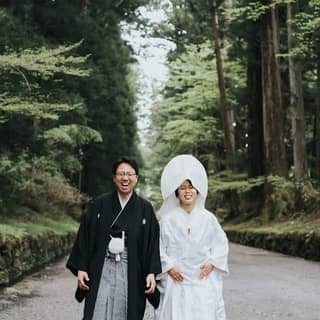 陽明門や祈祷殿を背景にした撮影の他、新郎新婦お二人きりの撮影もご案内しております。